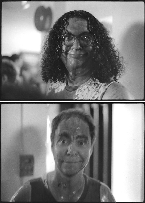 A gruesome variation on the classic sawing-a-lady-in-half typifies the duo’s dark humor. Teller was the victim on Letterman’s show, but the current version reflects “the idea that magicians have been abusing primarily female assistants for a terribly long time.”