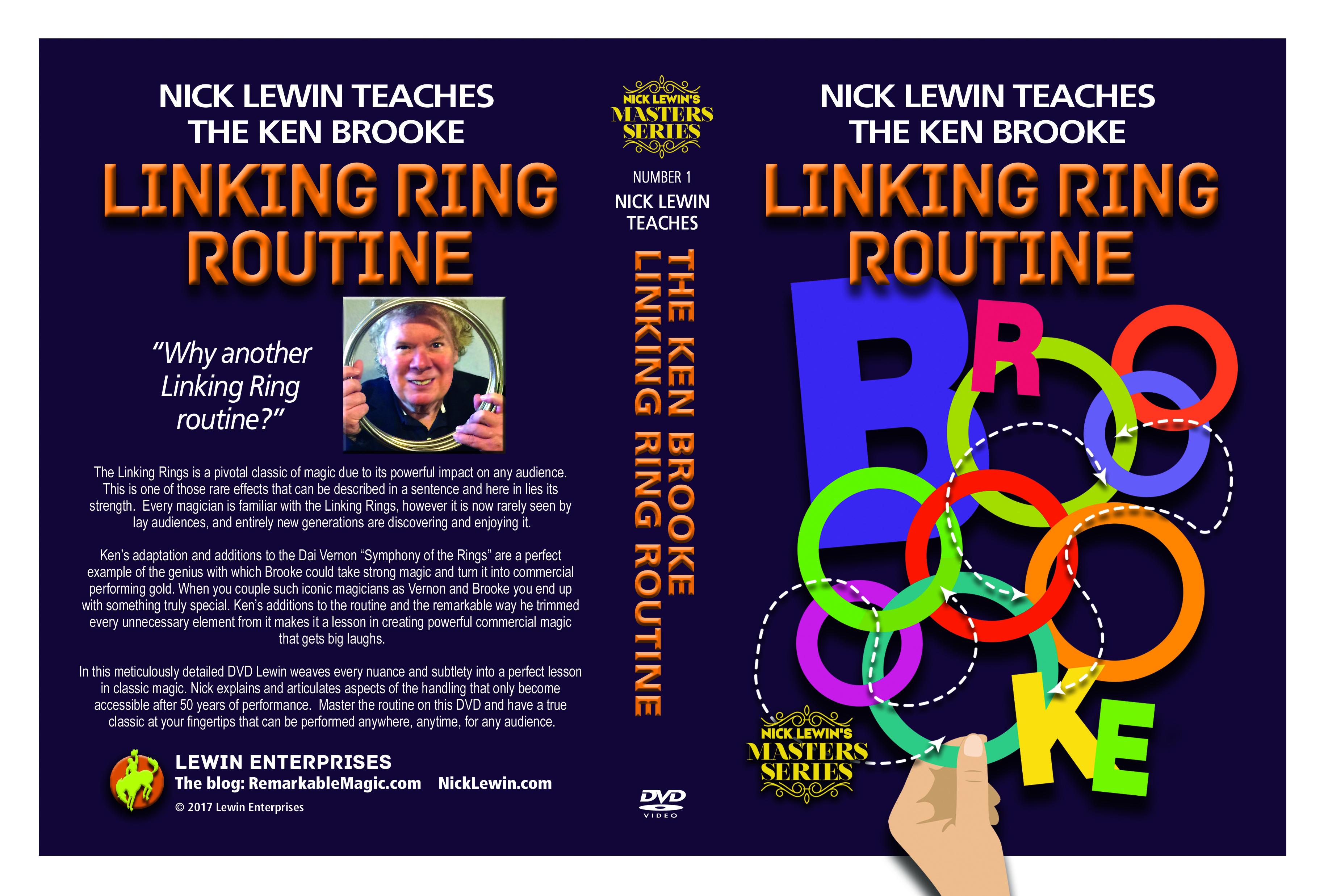 While I have featured this version of the Linking Rings as a stand-alone feature in my show, I eventually found the perfect role for it as the lead in to the Linking Finger Rings. The combination of these two effects is a powerhouse exercise in audience manipulation and was my first national television set in 1979 on the Merv Griffin Show from Caesars Palace in Las Vegas. Both of these tricks are among the handful of effects that while ideal for stage performance are made even stronger by the being performed close-up or in front of the camera. The profound significance they have had on my career is hard to convey.” — Nick Lewin